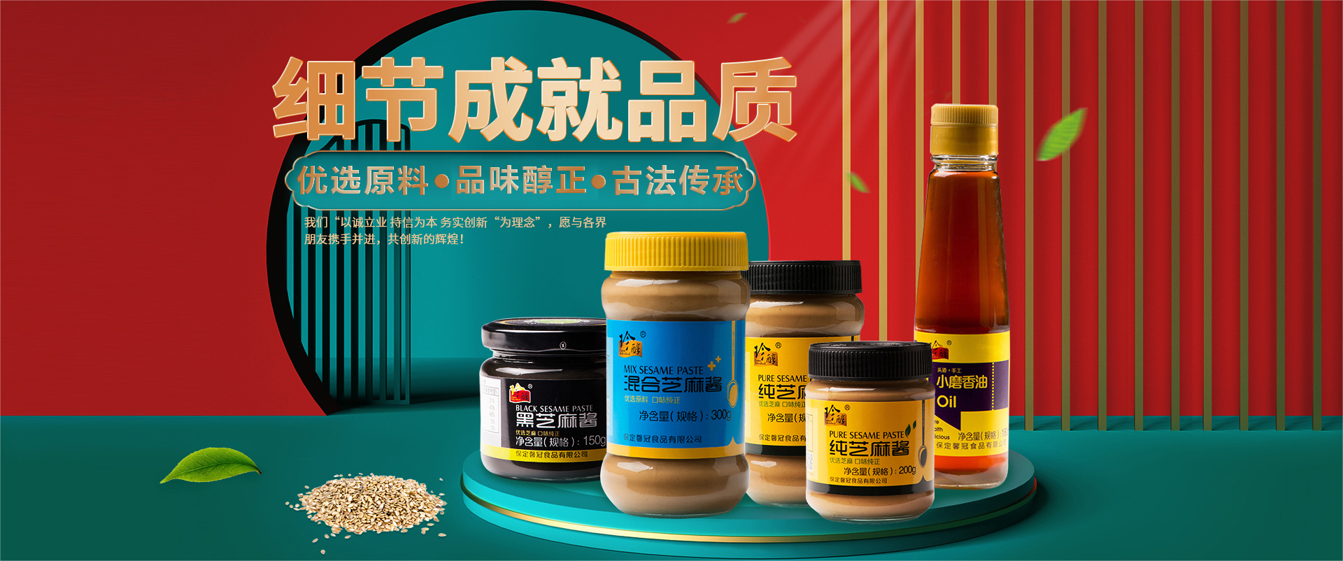 保定馨冠食品有限公司坐落在河北省保定市滿城區(qū)李鐵莊村。以“以誠立業(yè) 持信為本 務(wù)實創(chuàng)新“為理念”。馨冠公司主要品牌“馨冠”“珍醇”“靖王”等注冊商標(biāo)。公司主營芝麻油、芝麻醬、花生醬三大系列40多個產(chǎn)品。